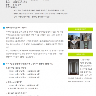 행복공장이 진행하는 성찰 프로그램에 많은 관심과 사랑 부탁드립니다.